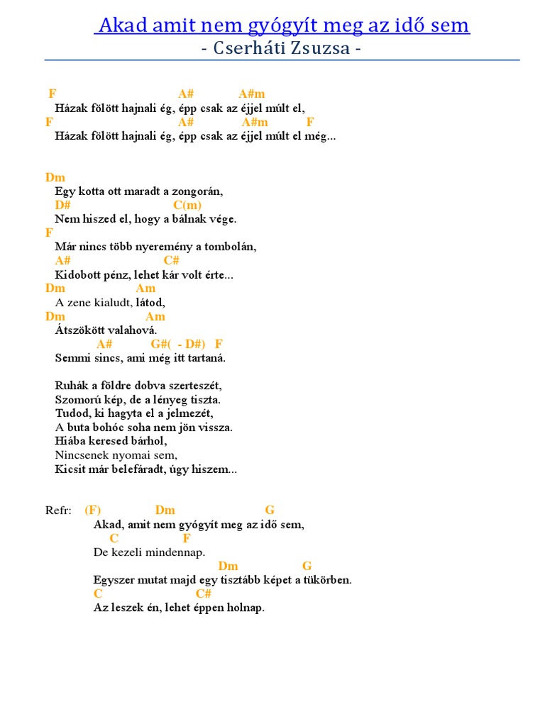 Akad Amit Nem Gyogyit Meg Az Ido Sem Lyrics And Music By Cserhati Zsuzsa Arranged By Triciadder
