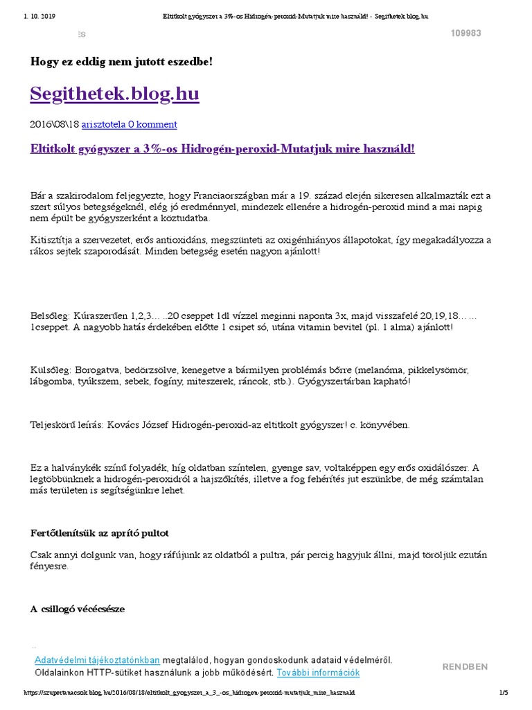 Http eyes blog hu a prof eredeti orosz csatornája oroszul tudóknak. H 2 0 2. Hidrogen peroxid belsőleg 3 os duration. Hidrogén peroxid okozza a tüdőrákot.