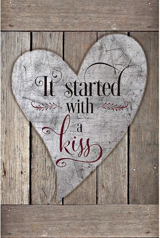 Amazon Com Lela Ollie Started With A Kiss Wood Plaque With Inspiring Quotes 6 X9 Classy Vertical Frame Wall Tabletop Decoration Easel Hanging Hook It Started With A