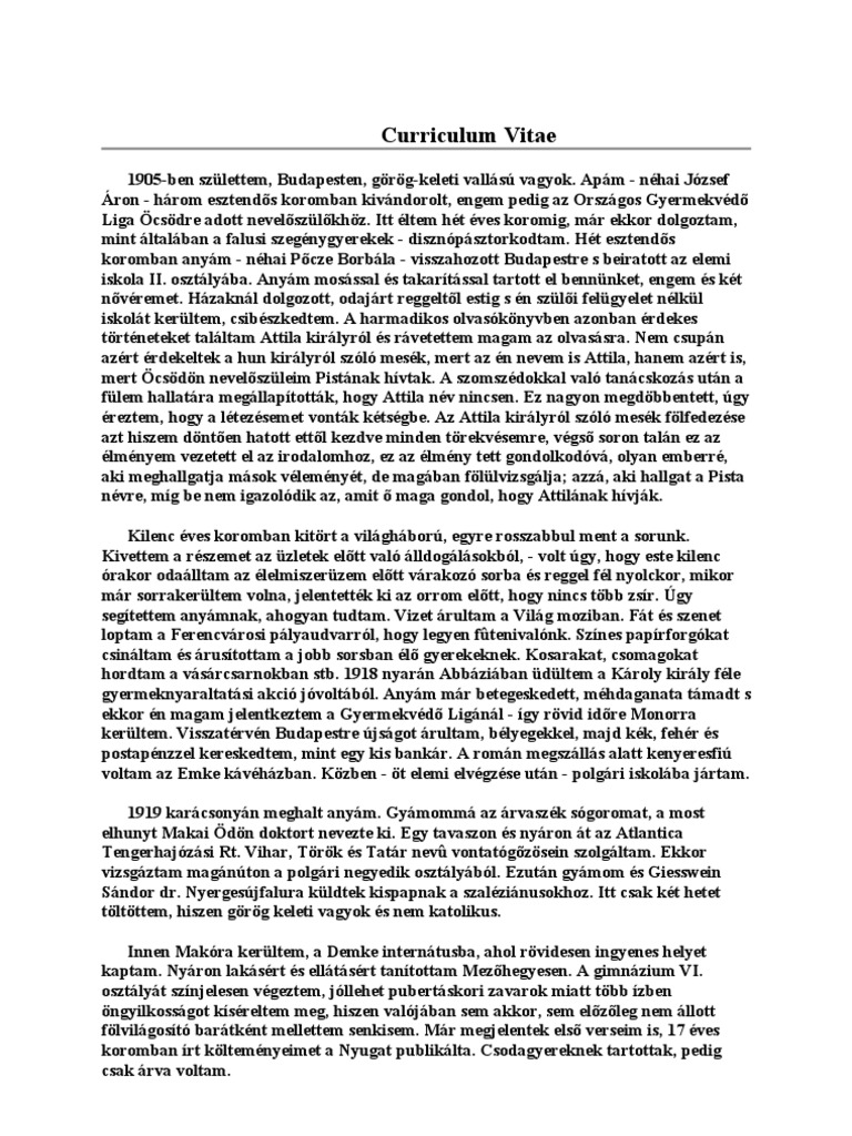Jozsef Attila Curriculum Vitae