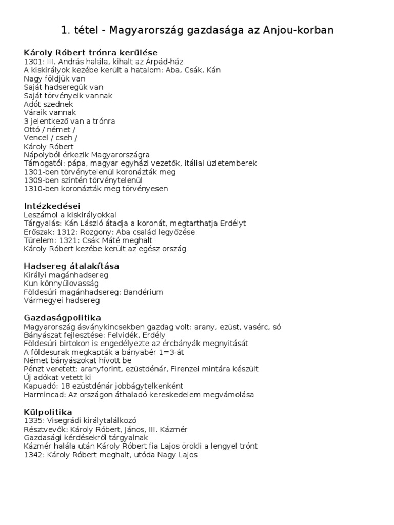 Az Anjou Kor Gazdasaga Tortenelem Kidolgozott Erettsegi Tetel Erettsegi Com