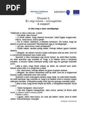 Szövegértés Felmérő 2 Osztály