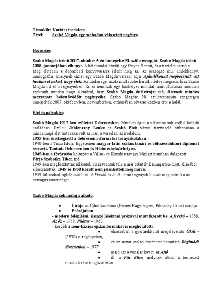Szabo Magda Az Ajto Dori Online Olvasonaploja