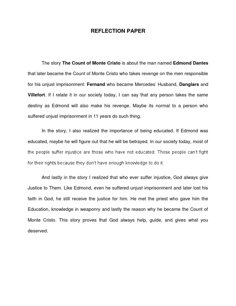 Reflection The Count Of Monte Cristo The Count Of Monte Cristo Edmond Dantes